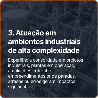 Sim. Atuamos em projetos industriais e de infraestrutura envolvendo plantas industriais, bases de equipamentos, estruturas especiais e obras críticas, incluindo clientes de grande porte e consórcios.