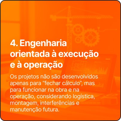 Nosso trabalho não termina na entrega do projeto. Ele só termina quando o projeto cumpre sua função na obra e na operação do cliente.